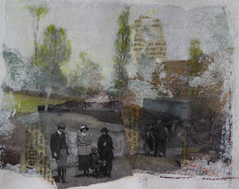 Mon matériau de départ est constitué de ces clichés d’amateurs avertis issus d’albums de famille ou de collections privées. Ces images photographiques peuplent mon imaginaire, guident mon inspiration.