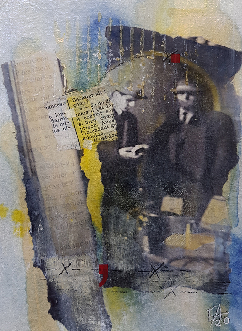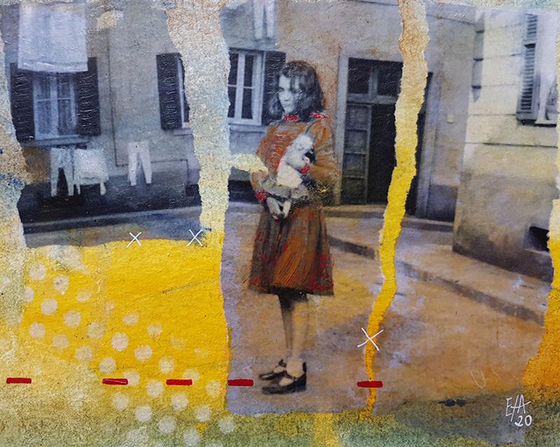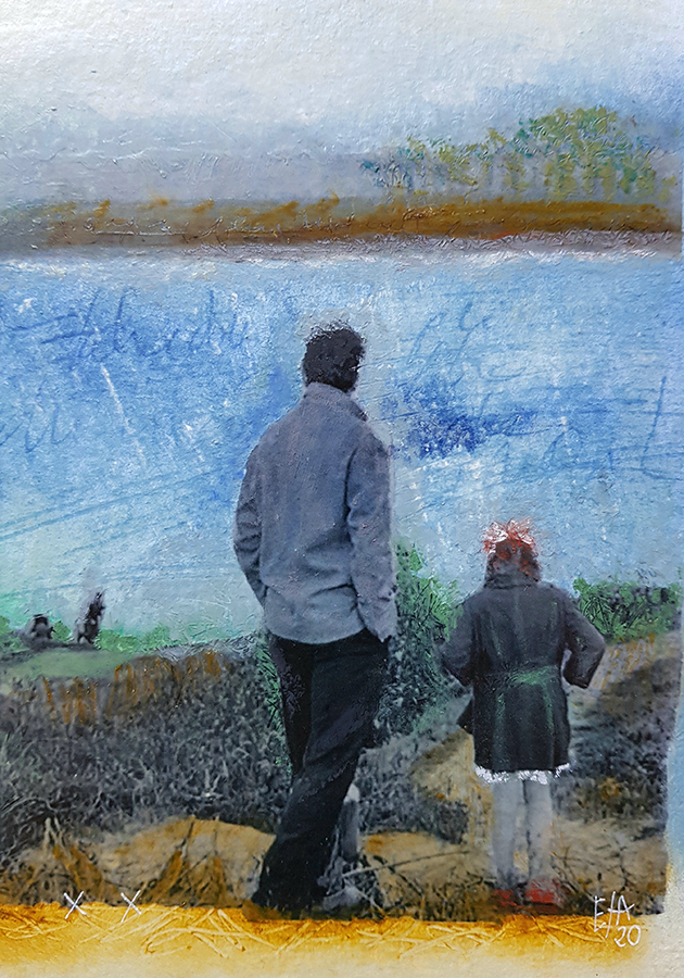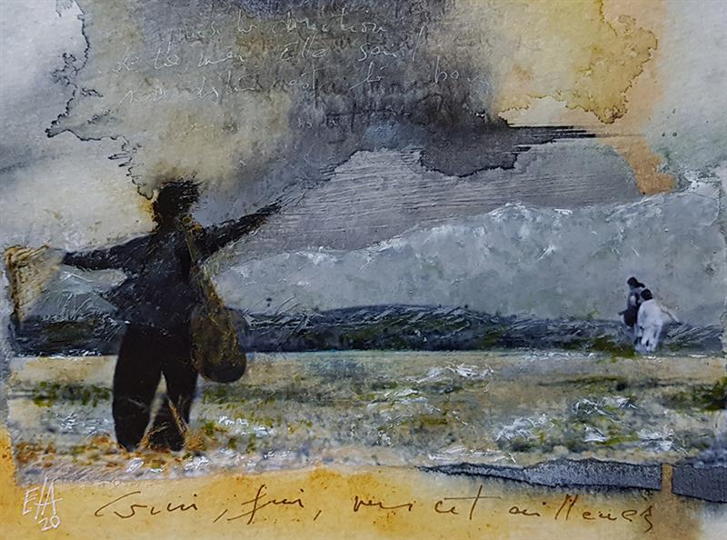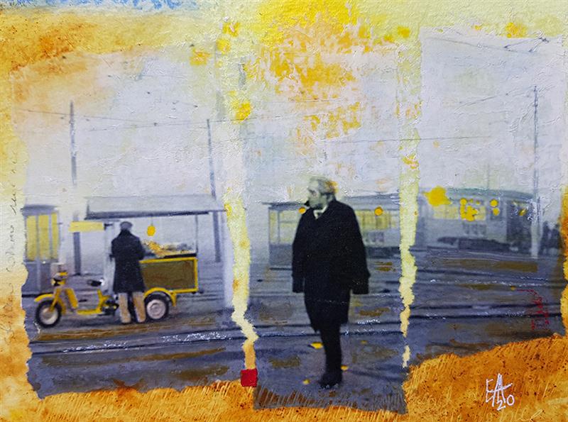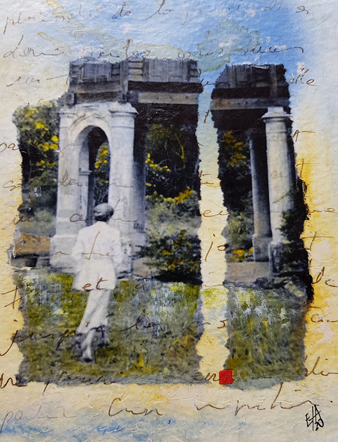 Je capture un instant qui me touche. Je traite ces images en infographie puis les “couche” sur papier aquarelle. Une nouvelle image sera révélée.