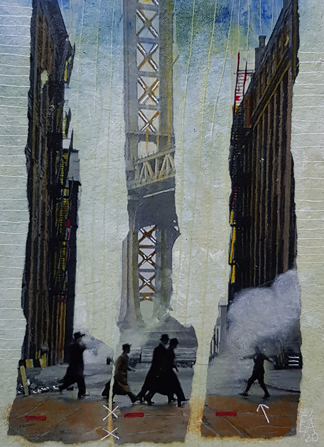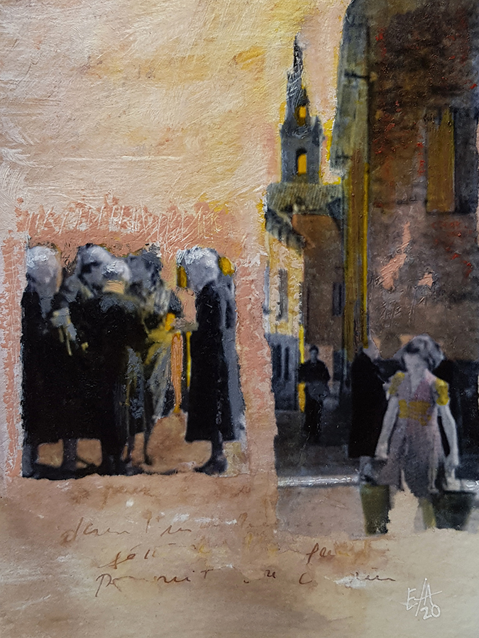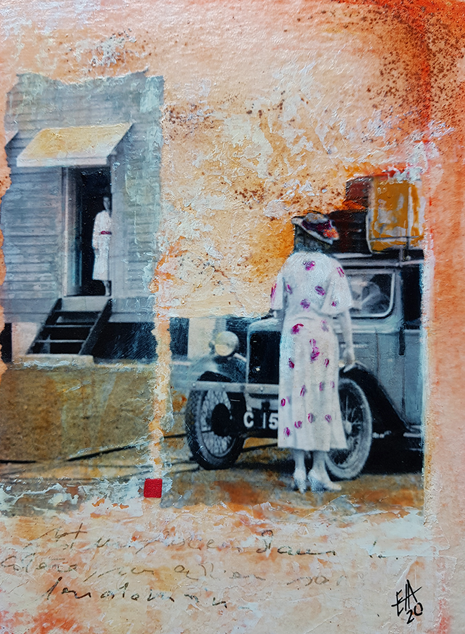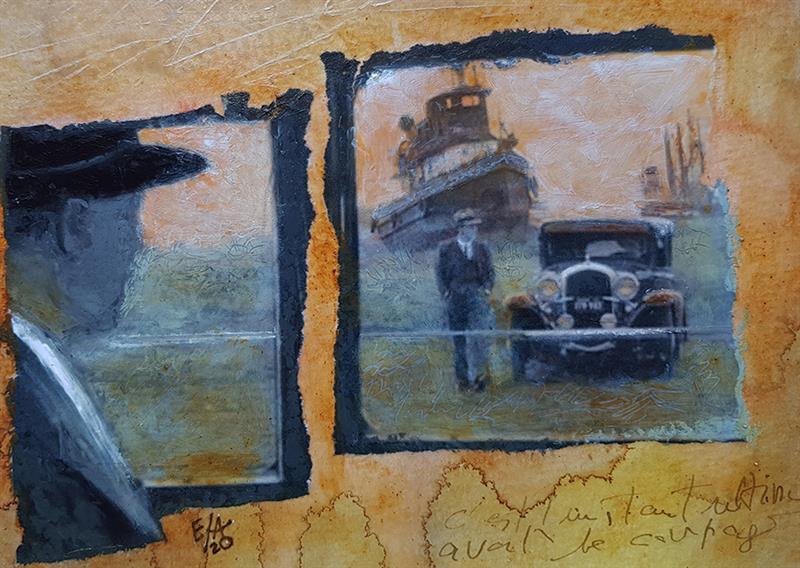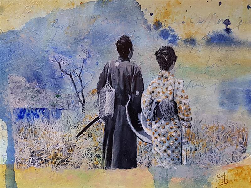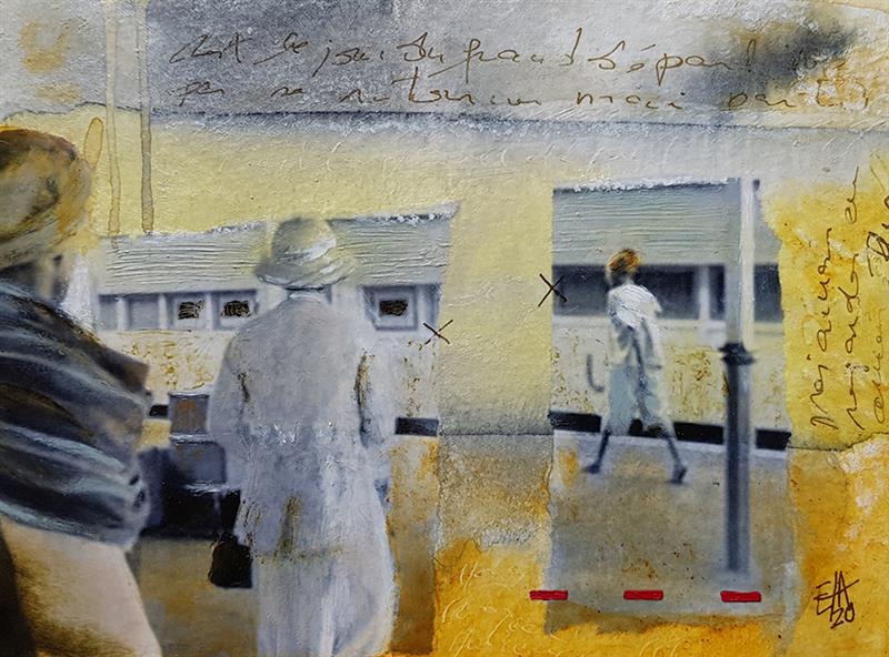 Je capture un instant qui me touche. Je traite ces images en infographie puis les “couche” sur papier aquarelle. Une nouvelle image sera révélée.
