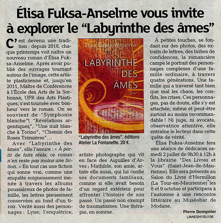 Après avoir situé ses romans en Maurienne ou dans le Piémont, Elisa Fuksa-Anselme nous transporte de la fin du XIXe jusqu’au milieu du XXe siècle, dans les méandres de la vie d’une famille française marquée par les conflits et ses lendemains. C’est à travers les photos et les correspondances des personnages qu’elle nous offre ce récit à la fois romancé et criant de vérité.