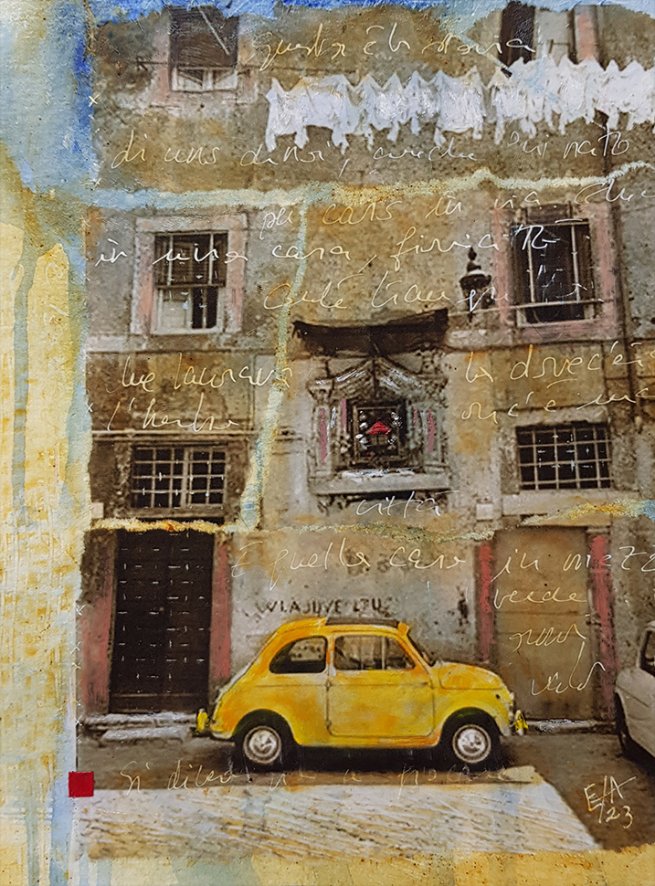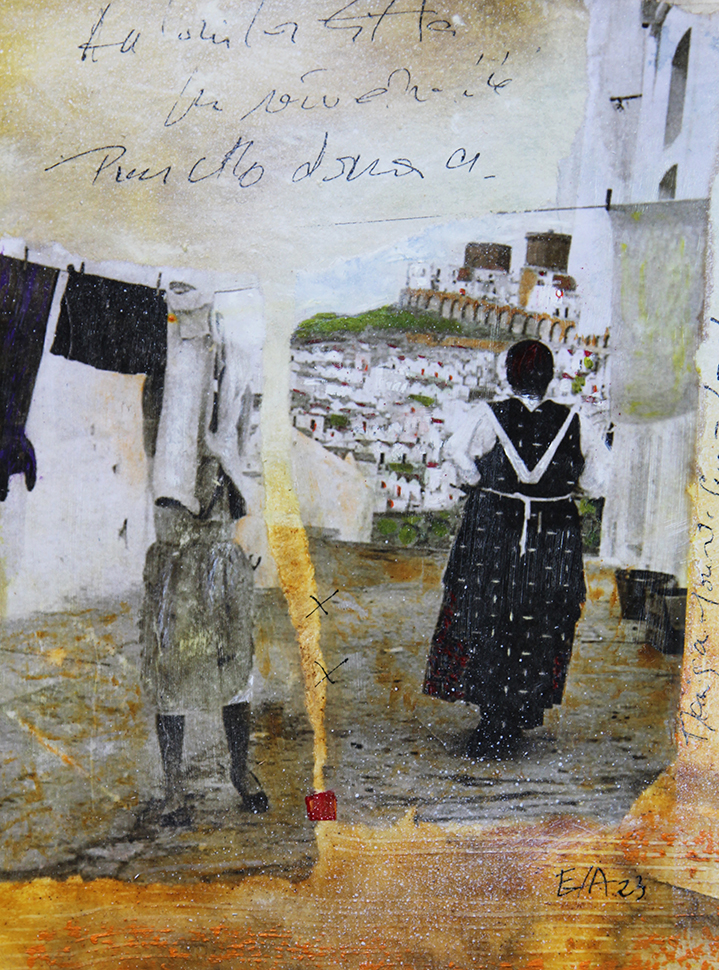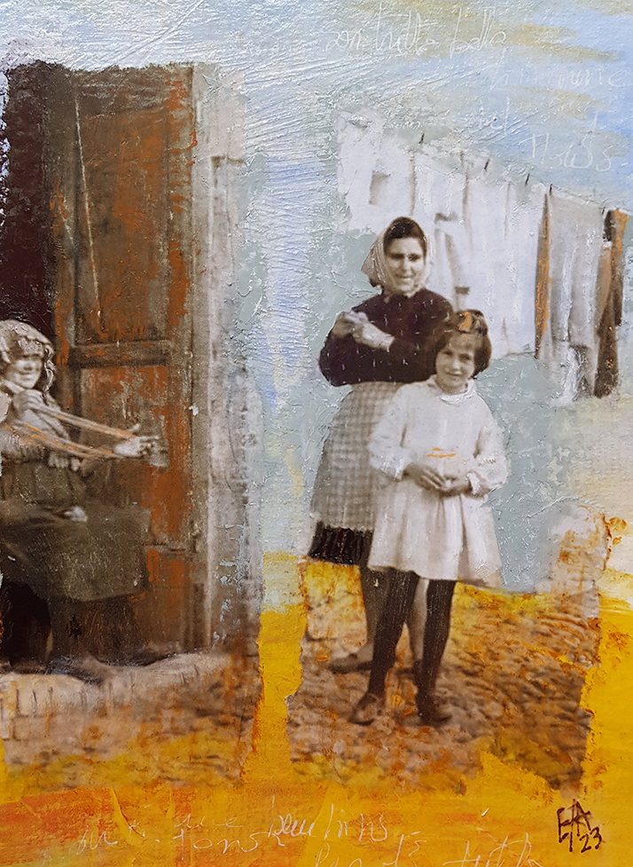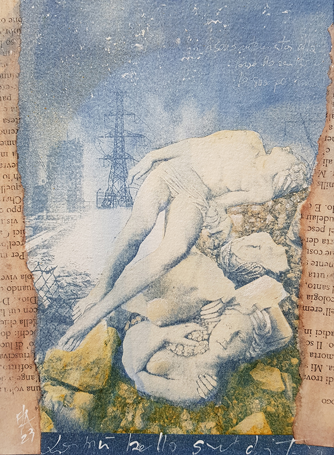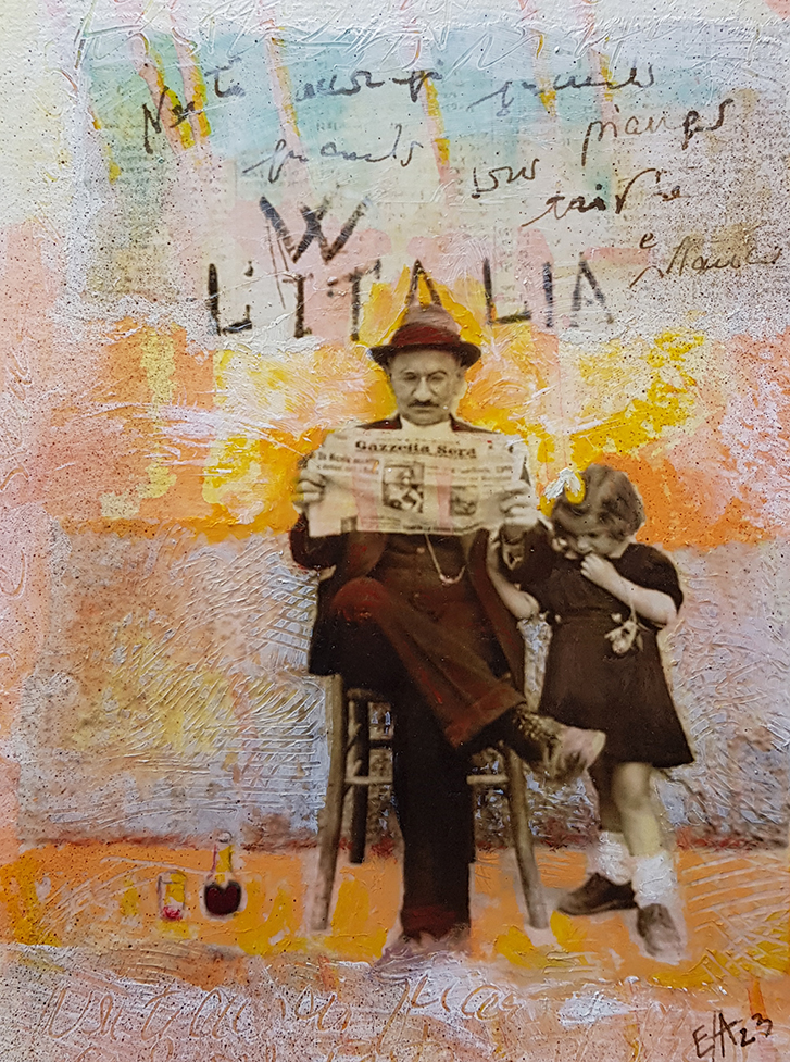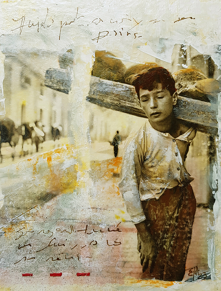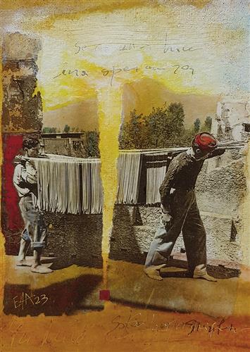 Pour cette exposition, je présente une petite série de neuf œuvres sur papier. Chaque petite pièce reste dans l'atmosphère d'un monde rural dans l'italie de la première moitié du vingtième siècle.