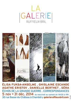 En novembre-décembre la Galerie Ruffieux-Brill accueille une exposition en mémoire de cette période de notre Histoire. Engagée dans une démarche artistique qui rend hommage aux hommes et leurs correspondances, j'ai pu réunir autour de ce projet quatre autres plasticiens : Danielle Berthet (artiste de la galerie), Séra, Agathe Eristov et Ghislaine Escande (artistes parisiens).